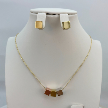 2025 en Stock Dubai Nigeria 14K chapado en oro geométrico colgante collar pendientes conjunto de joyería moda novia accesorios KY25329