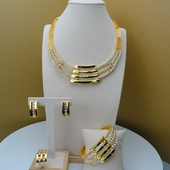 Yuminglai Venta caliente más nuevo brasileño oro joyería exquisito collar pendientes anillo pulsera regalo FHK23475