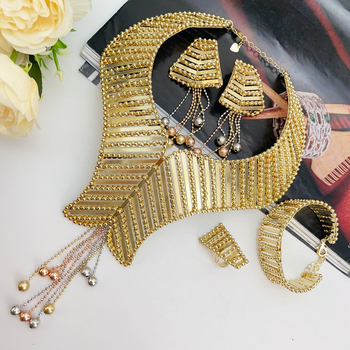 दुबई के सोने के गहने सेट-अफ्रीकी ब्राइडल नेकलेस इयररिंग ब्रैसलेट सॉस अरबिया महिला शादी के गहने सेट Fhk21372