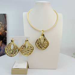 Petal Necklace 18k Yellow Fashionable Dubai Gold-plated Custom Jewelry Set Pendant Necklace Set for Women FHK21784