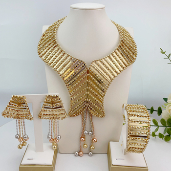 2025 Newest Brazilian Gold Jewelry Unique Necklace Sets Wedding Bridal Party Jewelry for Women FHK22798