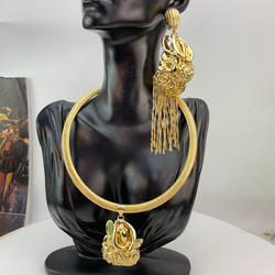 ชุดเครื่องประดับทองดูไบสร้อยคอเจ้าสาวแอฟริกันต่างหูแหวนสร้อยข้อมือซาอุดิอาระเบียผู้หญิงชุดเครื่องประดับงานแต่งงาน FHK21372